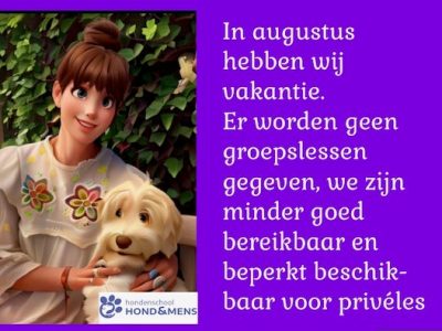 Van 27 juli t/m 31 augustus worden er geen groepslessen gegeven en is de hondenschool beperkt beschikbaar voor privéles. Wilt u een of meerdere privéles(sen) plannen vraag dan naar de…